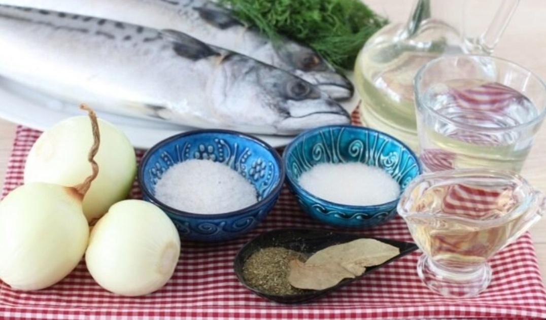 Ингредиенты — свежее филе скумбрии, лук, уксус 9%, растительное масло, соль, перец, лавровый лист и зелень по вкусу. Добавляйте красный перец по желанию, чтобы подчеркнуть характер блюда.