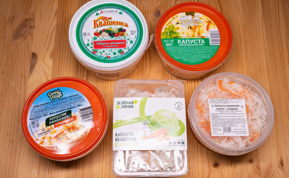 В рамках контрольной закупки были выбраны пять брендов квашеной капусты из популярных супермаркетов. Целью стало выявление самой вкусной и качественной продукции: