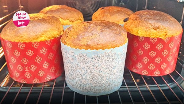 - После того как тесто увеличится, выпекайте куличи при температуре 170 градусов в течение 35-40 минут до золотистой корочки.
