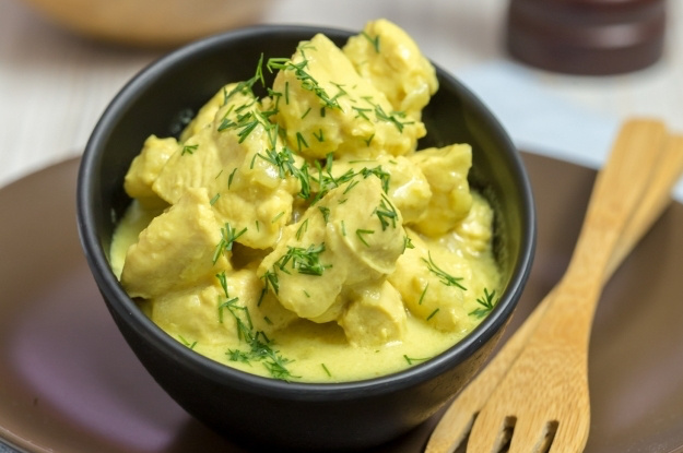 Добавляем кокосовое молоко, уменьшаем огонь и тушим под крышкой 10-15 минут. За это время соус загустеет, а мясо станет совершенно нежным. Наполняя дом экзотическим ароматом, это блюдо станет сюрпризом для всей семьи.