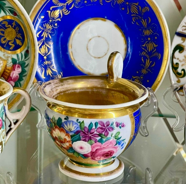 - Цилиндрическими и яйцевидными формами чашек с высокими фигурными ручками;
