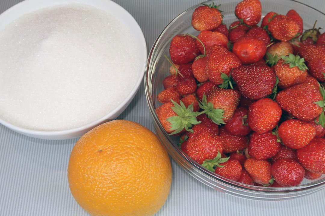 1. Подготовка ингредиентов: Клубнику следует тщательно перебрать, удалить поврежденные ягоды. Затем промыть её в холодной воде и выложить в дуршлаг, чтобы стекла лишняя влага. Апельсин необходимо промыть и нарезать тонкими кольцами, которые затем следует разделить на четвертинки.