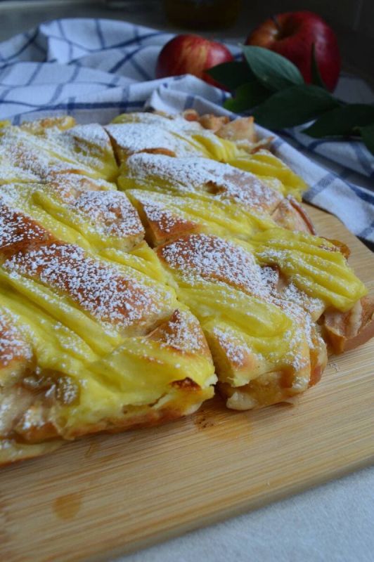 Этот оригинальный яблочный пирог с заварным кремом несомненно удивит всех своим вкусом и текстурой.