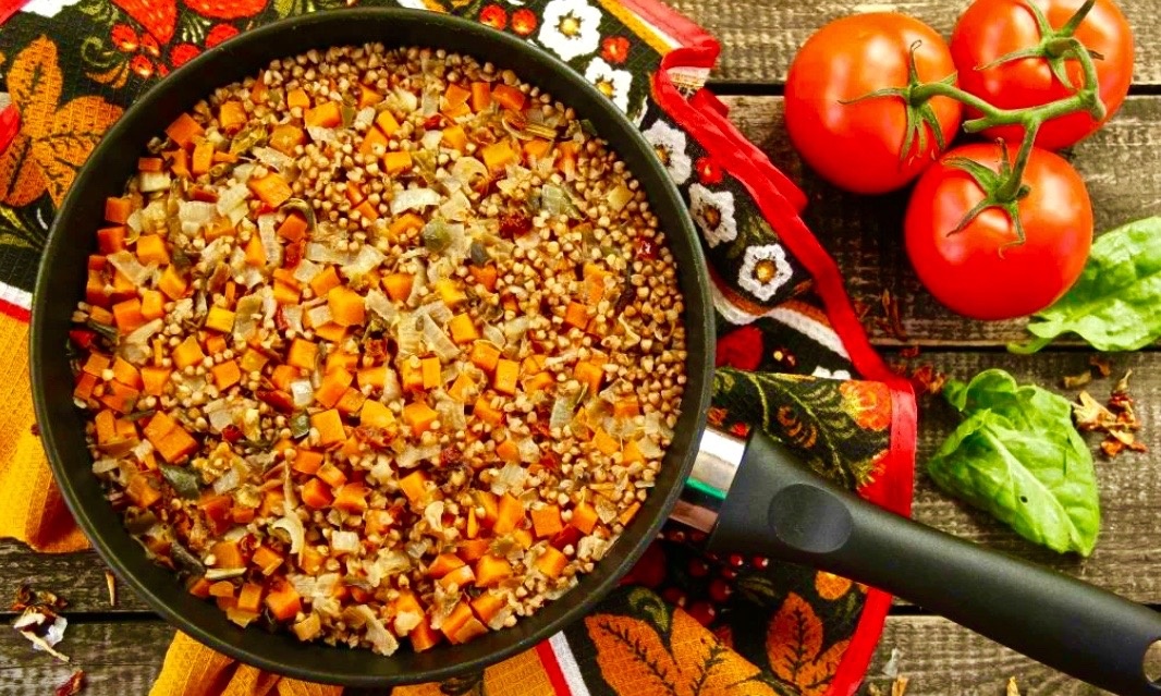 Этот легкий восточный салат популярен в странах Ливана и Сирии. Для его приготовления удобно использовать как обычную, так и зеленую гречку. Главное правило — немного недоварить гречку, чтобы она впитала ароматы овощей.