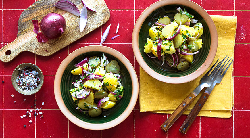 Немецкая традиция заправлять картофельный салат горячим соусом является не случайной. Когда картофель еще теплый, он невероятно быстро впитывает ароматы заправки, что делает блюдо особенно насыщенным. Эта хитрость позволяет создать великолепный, но доступный по цене салат, который удивит своих гостей.