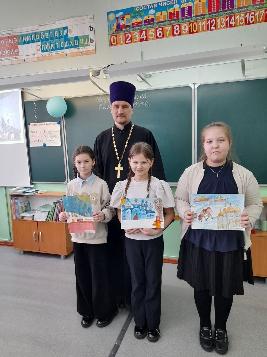 В преддверии Масленицы в Решотинской основной школе прошел уникальный праздничный урок, где учащиеся 4 класса встретились с настоятелем Покровского храма, протоиереем Сергием Смутиным. В ходе встречи священник познакомил детей с церковным календарем и значением Сырной седмицы, пояснив, как народные традиции переплетаются с духовными основами праздника.