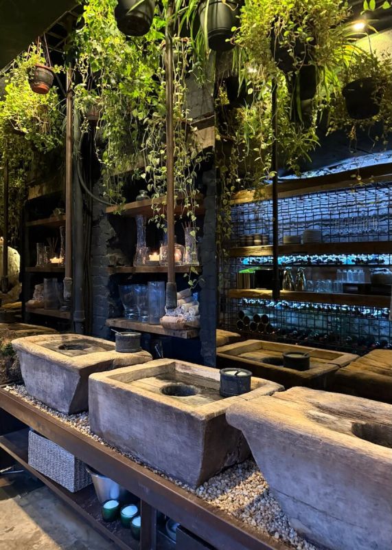 Sempre буквально утопает в зелени и экзотических растениях, а мебель, привезенная с солнечного Бали, создает уникальный характер заведения. Особое внимание заслуживает оригинальная станция для мытья рук, которая превращает этот процесс в настоящий аттракцион.