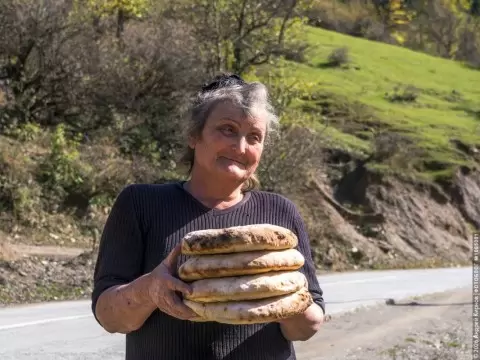 В её маленьком заведении, расположенном вдоль дороги, каждый посетитель может остановиться, чтобы насладиться не только прекрасным хлебом, но и знаменитой сванской солью, освежающим лимонадом и многими другими местными угощениями. Это небольшой бизнес, который помогает сванской бабушке выживать и зарабатывать перед долгими зимними холодами.