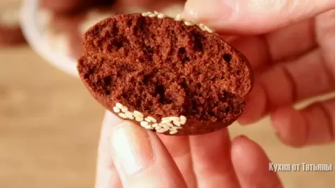 • Сформируйте из теста небольшие шоколадные шарики и выложите их на противень, застеленный пергаментной бумагой, оставляя между ними расстояние. Немного прижмите верхушки печенья и посыпьте кунжутом.