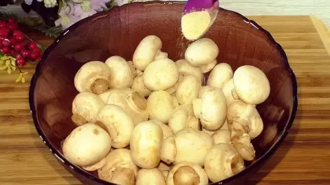 Шампиньоны нужно тщательно промыть и просушить. Рекомендуется использовать мелкие экземпляры; в случае крупной породы, их стоит разрезать на несколько частей. Затем в глубокой миске грибы обсыпают сушёным чесноком, паприкой, прованскими травами и солью. Добавление растительного масла и лимонного сока завершает предварительную подготовку. Все ингредиенты нужно хорошо перемешать.