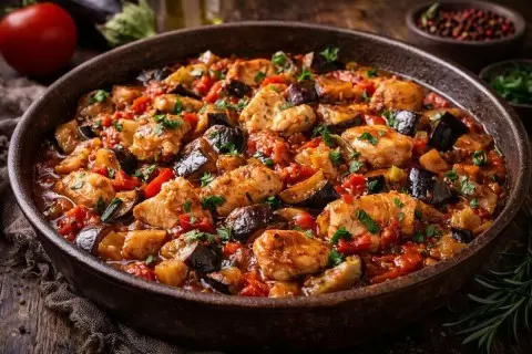 На кухне вновь раздаются звуки готовки, и сегодня в центре внимания — удивительное рагу из баклажанов и курицы. Это блюдо — настоящий кулинарный гимн простоты и вкуса, не требующее сложных гарниров и многоуровневой подготовки.
