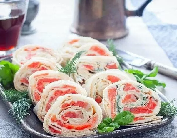 Эта простая и невероятно вкусная закуска – отличное решение для праздничного стола. Рулет из лаваша легко приготовить, а результат всегда впечатляет. Для его приготовления идеально подойдет слабосоленая рыба из семейства лососевых. Чтобы легче было резать рыбу, рекомендуется замораживать филе около одного часа, а затем нарезать его тонкими слайсами острым ножом.