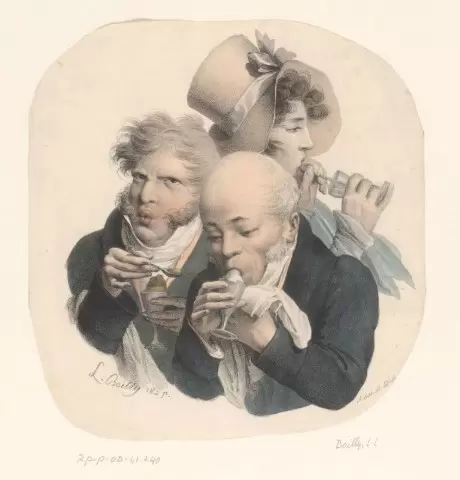 Двое мужчин и женщина наслаждаются мороженым, холст Луи-Леопольда Буайи, 1825 год.