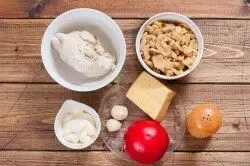 Перед началом работы стоит подготовить все необходимые ингредиенты. Куриное филе лучше заранее отварить и охладить. Можно использовать как запечённое, так и копчёное мясо для усиления вкуса. Подходящие шампиньоны — это прямо из банки, но лучше использовать домашние, если есть такая возможность. Обратите внимание на сыр: выбирайте твёрдый, так как от его солёности зависит количество добавляемой соли в салат.