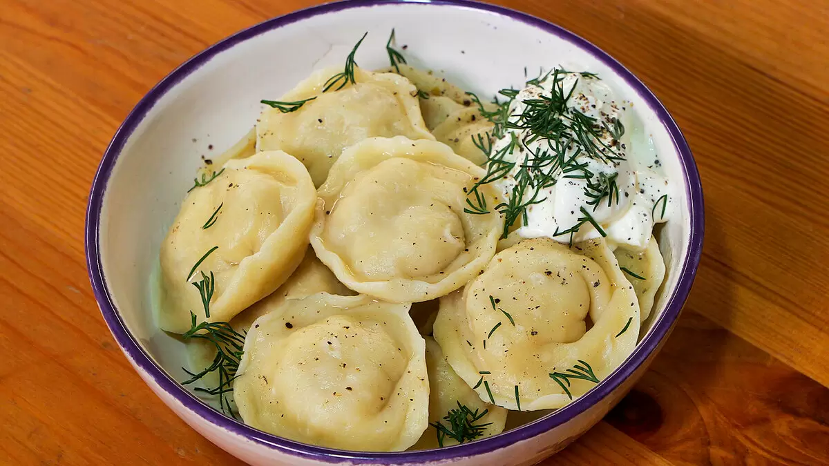 Готовые пельмени можно подавать с ароматным укропом и щедрой порцией сметаны. Приятного аппетита!