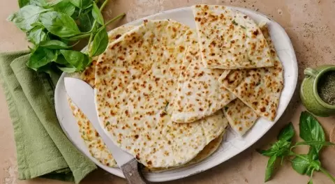 Восхитительные лепешки с золотистой корочкой и хрустящими краями покорят сердца всех домочадцев. Начинка из сыра дарит сочность и тягучесть, а благодаря тому, что тесто готовится на молоке и без дрожжей, процесс становится легче и быстрее. Полутвердый сыр идеально плавится, создавая сливочный вкус, а добавление зелени базилика придаст оригинальности и свежести. Аромат домашней выпечки, заполнивший дом, соберет всю семью за столом.