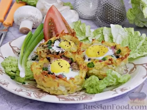 - Ингредиенты: картофель, бекон, лук репчатый, белое сухое вино, сливки, твёрдый сыр, мускатный орех, соль, чёрный молотый перец.