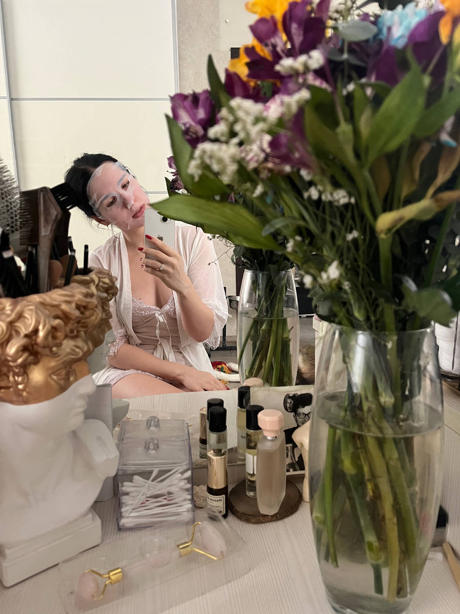 - Бьюти процедуры: массаж лица с роллером и тканевая маска.