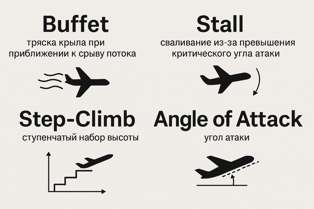 Одним из ключевых понятий в авиации является step-climb, то есть ступенчатый набор высоты. Самолет постепенно обретает оптимальную высоту, начиная с максимально тяжелого состояния из-за топлива. Пилот последовательно поднимается, стабилизируя высоту и сбрасывая избыточный вес.