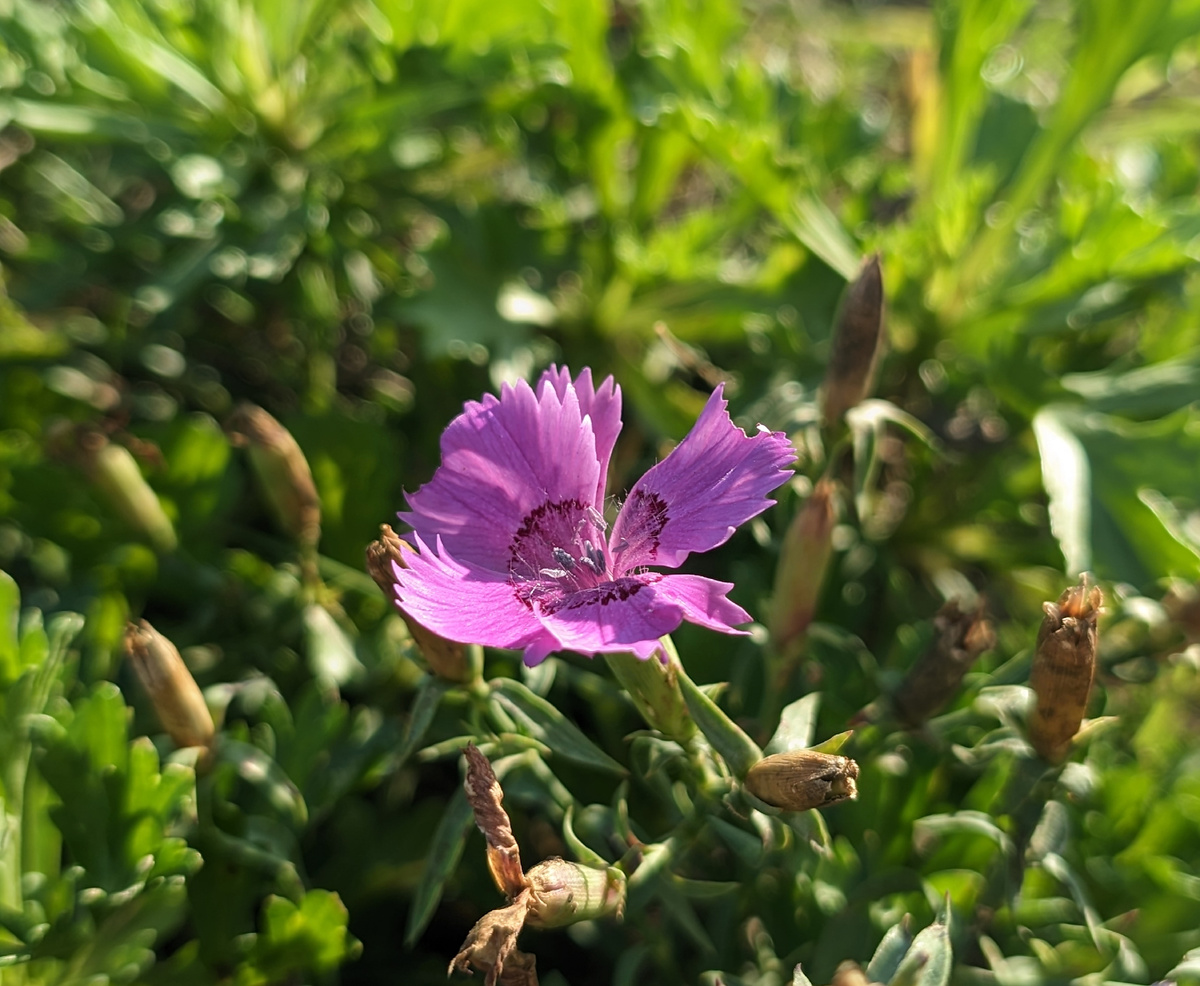 На тропинках Владивостока уступает длинный путь гвоздика амурская. Несмотря на то что ее цветение уже завершилось, отдельные сияющие звездочки еще можно встретить в разнотравье. В этом пестром ковре бушуют мышиный горошек и другие дикие цветы, создавая прекрасный хаос разнообразия — от ярких стручков до нежных розоватых горцев.