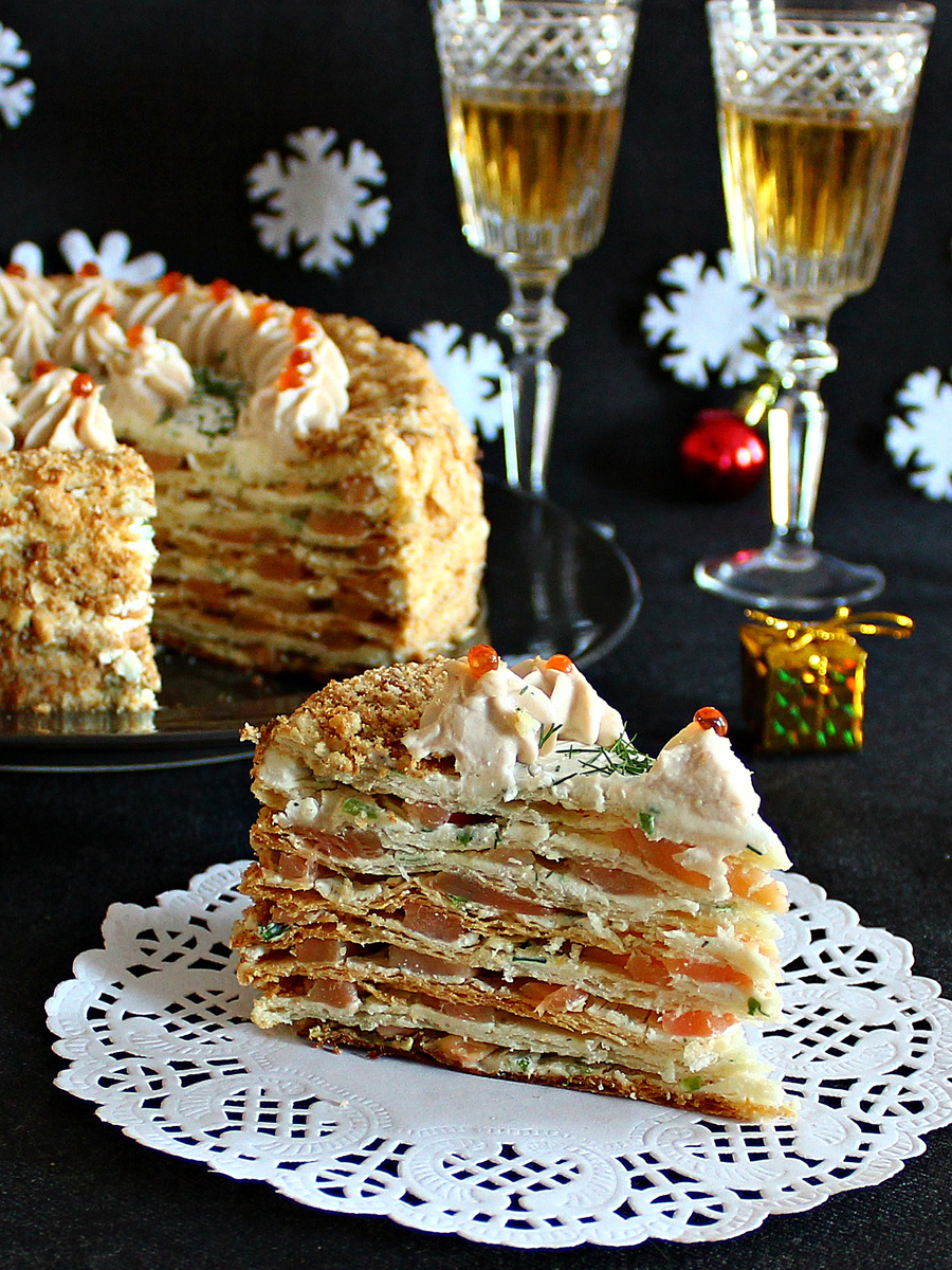 Воздушные коржи, нежный творожный крем и тонкие ломтики красной рыбы делают этот торт настоящим кулинарным шедевром. Идеален для тех, кто хочет удивить гостей и при этом избежать долгих готовок. Основа может быть приготовлена самостоятельно или куплена готовой, а начинка сочетает в себе лёгкий солоноватый вкус рыбы и кремовую мягкость творога. Этот торт станет не просто блюдом, но и эффектным акцентом на праздничном столе!