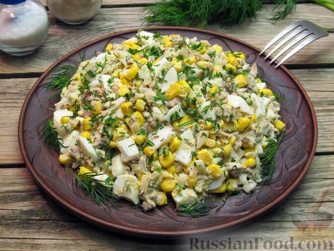 Простой и быстрый в приготовлении салат из консервированной рыбы, кукурузы и яиц станет настоящей палочкой-выручалочкой в случае неожиданных гостей. Этот сытный вариант можно сделать за считанные минуты, а компоненты абсолютно не требуют дополнительной термической обработки.