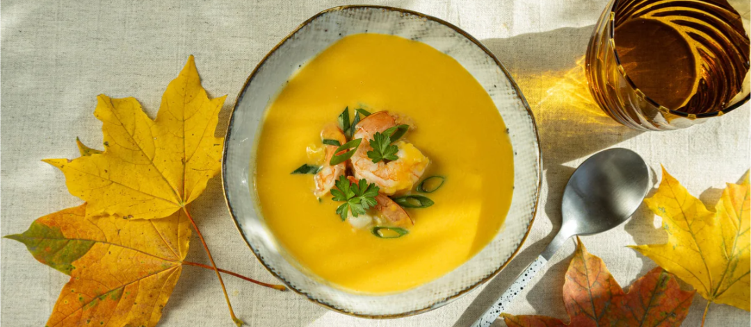 Тыквенные супы могут быть разными, и этот вариант выполнен в азиатском стиле. С кремовой текстурой благодаря кокосовому молоку и пикантным вкусом креветок, он просто создан для осеннего времени.