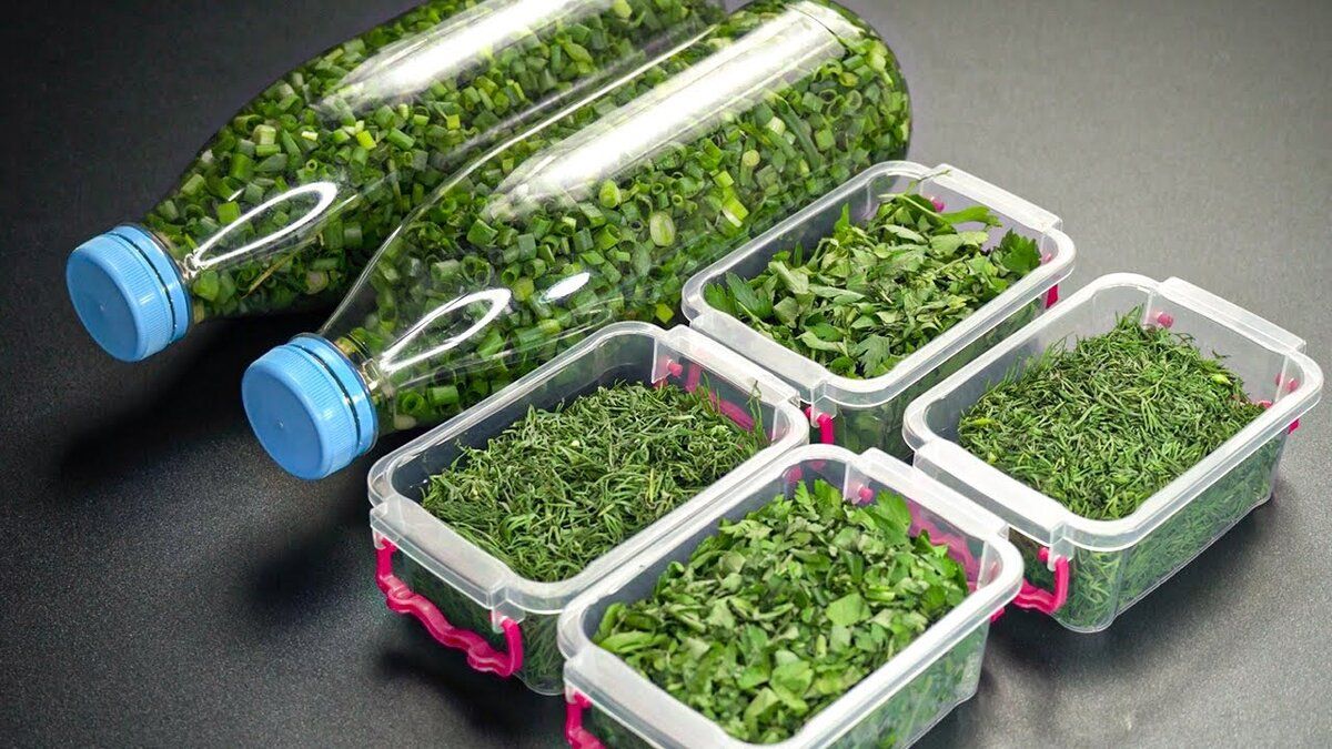 Упакуйте нарезанную зелень в пластиковые контейнеры или специальные пакеты для заморозки. Закрывайте емкости плотно и отправляйте в морозильник. По мере необходимости можно будет извлекать нужное количество заготовок.