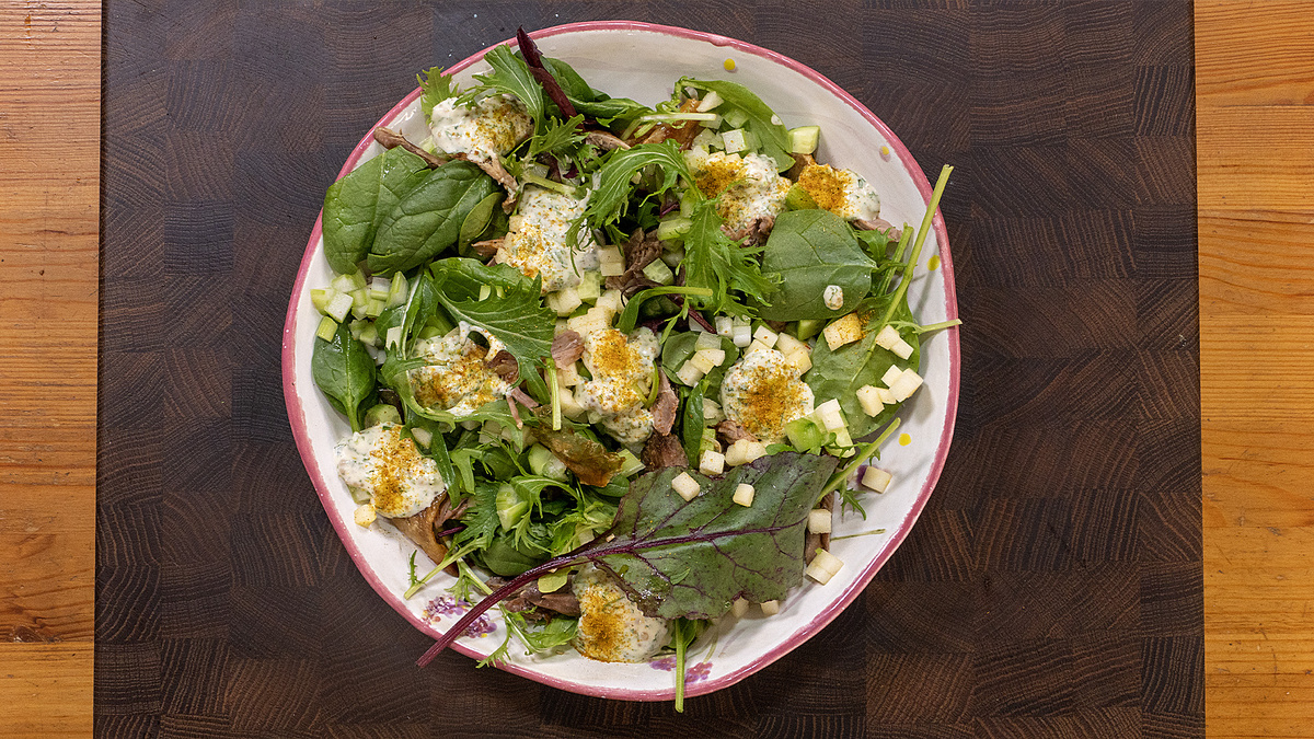 Вкусный микс хрустящих салатных листьев, нежного мяса индейки, сладкого яблока и свежих огурцов делает этот салат не только аппетитным, но и очень полезным. Добавление хрустящего сельдерея создает удивительный контраст, а ароматная заправка, основанная на простых ингредиентах, придаст блюду особый шарм.