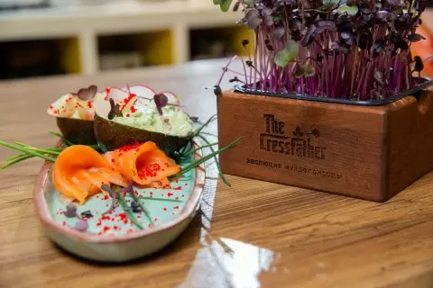 Чтобы сделать салат визуально привлекательным, украсьте его тонкими слайсами редиса, немного икры «Тобико» и микрозеленью редиса. Такой подход придаст блюду живость и праздничный вид.