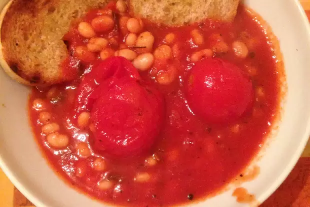 Сначала обжарьте хлеб. Сбрызните его 2 столовыми ложками оливкового масла и разместите в тостере или на гриле. Следите за тем, чтобы он стал хрустящим и золотистым.Далее подготовьте овощную основу. В сковороде разогрейте оставшееся масло, добавьте измельченный чеснок и листья шалфея. Обжарьте на среднем огне около 1 минуты, пока чеснок не приобретет золотистый оттенок.Пришло время добавить основные ингредиенты. Всыпьте в сковороду томаты, фасоль, немного соли и молотый перец. Перемешайте все компоненты и готовьте еще несколько минут, чтобы суп немного загустел.При подаче в глубокие тарелки поместите по кусочку обжаренного хлеба и залейте их ароматным супом. Подавайте горячим и наслаждайтесь!Это блюдо станет отличным вариантом для обеда или ужина, согревая даже в самые холодные дни. Попробуйте и вы, и ваши близкие по достоинству оценят этот именно что домашний рецепт, полный вкуса и тепла!