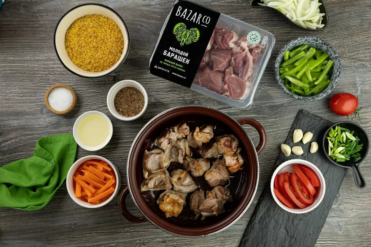 При подготовке ингредиентов овощи следует тщятельно промыть и очистить, в то время как мясо мыть не рекомендуется. Баранину нарезают на кубики, морковь – тонкой соломкой, а лук – кольцами. Рис, в свою очередь, необходимо хорошо промыть до чистоты воды, а затем оставить в жидкости на полчаса для набухания.