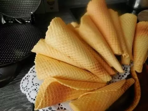 В результате получается ароматный и деликатный вафельный стаканчик, который можно использовать для подачи любимых десертов или же просто наслаждаться им самостоятельно. Готовые стаканчики могут стать отличной базой для мороженого или других сладких начинок!