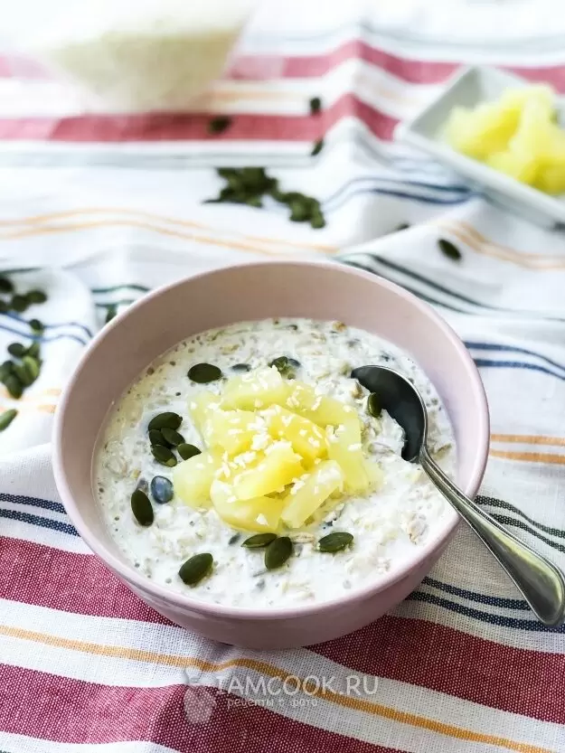 Нужен быстрый и вкусный завтрак? Ленивая овсянка «Пина Колада» идеально подойдет для тех, кто ценит свое время и любит наслаждаться оригинальными блюдами. Этот легкий, но сытный завтрак из овсяных хлопьев, йогурта и ароматного ананаса быстро приготовится накануне вечером, оставив вам только наслаждение утром.