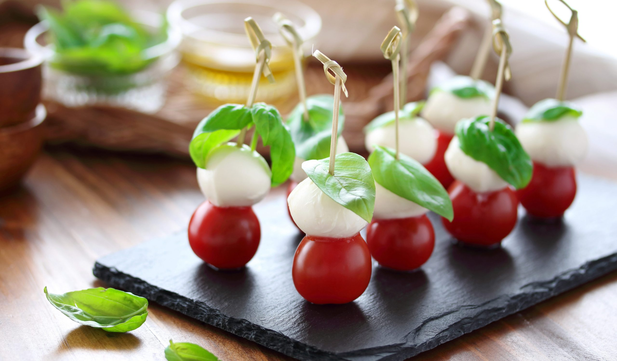 Помидоры, содержащие ликопин и витамин C, в сочетании с базиликом, богатым антиоксидантами, и кальцием из моцареллы создают не только вкусное, но и полезное блюдо. Лёгкая оливковая заправка добавляет в закуску полезные жирные кислоты, тем самым делая шпажки «Капрезе» идеальной закуской для любого события.