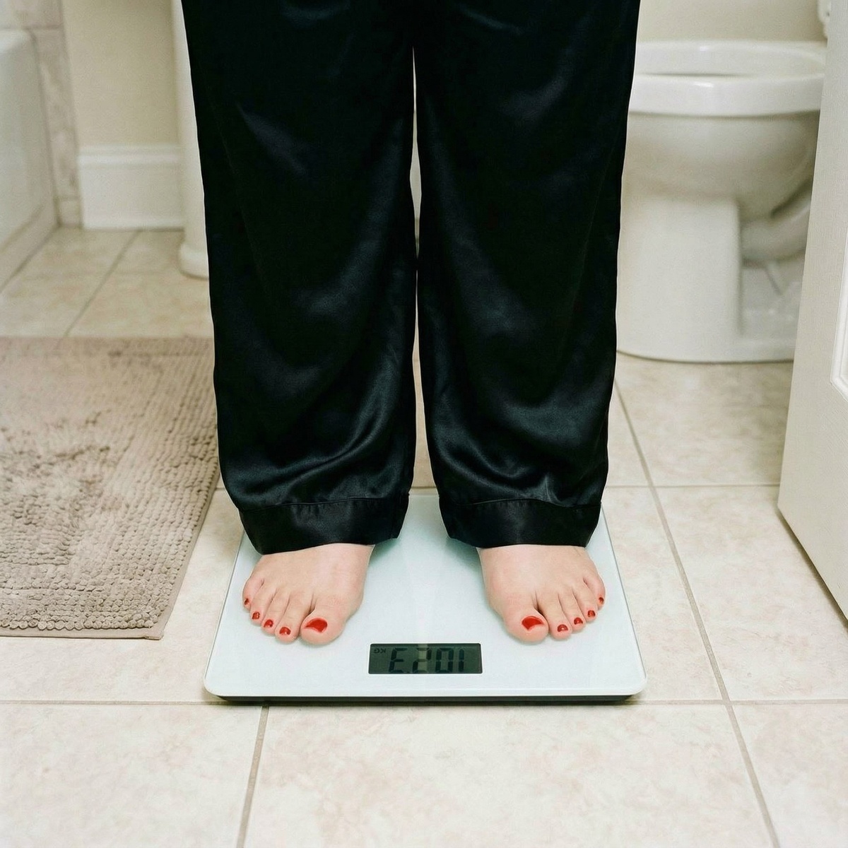 Вес немного увеличился. На весах видятся цифры, которые вызывают чувство недовольства. Вчера произошёл небольшой минус, но сегодня получилось наоборот. Эти изменения внутри вызывают внутренние терзания.